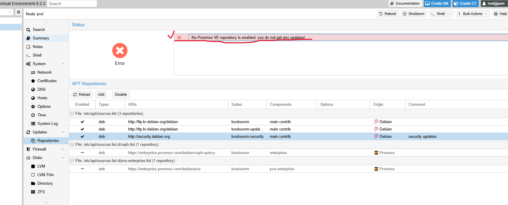 # 1) Proxmox VE 8 no-subscription repo 추가